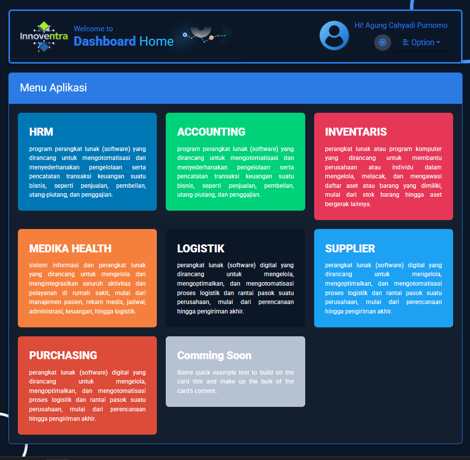Di Innoventra, kami percaya bahwa inovasi adalah bahan bakar utama kemajuan. Kami hadir untuk menciptakan produk dan layanan digital yang tidak hanya canggih, tapi juga memberi nilai nyata bagi pengguna.